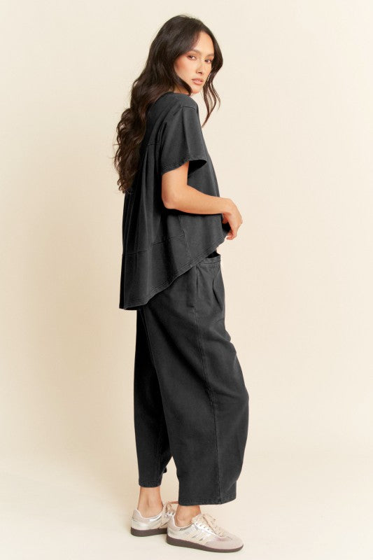 The Dete Washed Short Sleeve + Pleated Pant Set in Black
