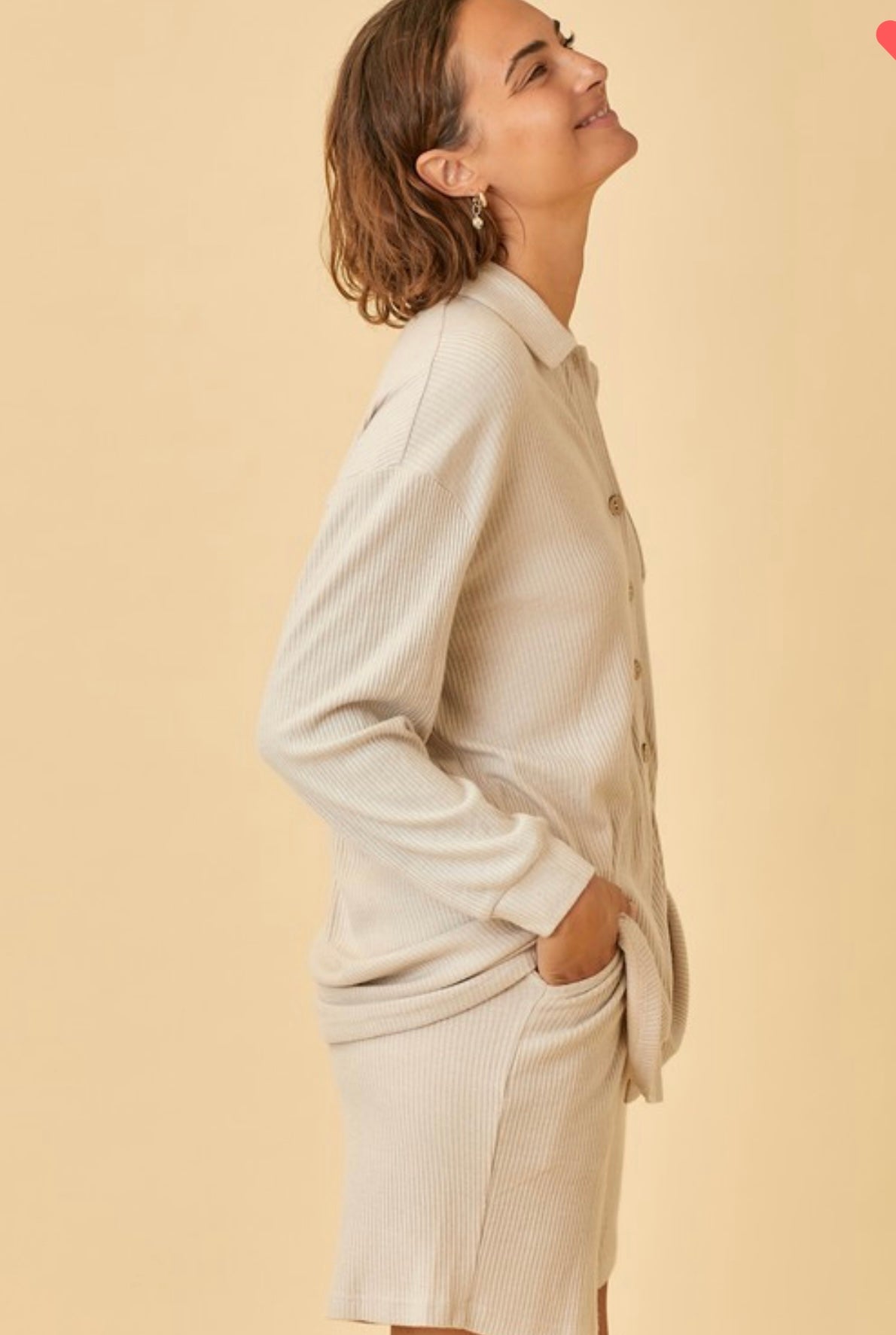 A delightfully versatile lounge shirt that effortlessly transitions from casual to dressy when the occasion calls! So irresistibly comfortable, you'll find yourself reaching for both colors daily. With its button-up collar, stretchy fabric, and incredibly soft texture, this might just become the shirt you refuse to take off.