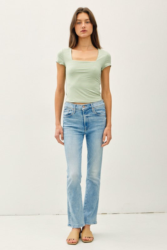The York Basic Layering Tee in Pistachio brings playful charm to your everyday wardrobe! This essential top features a flattering square neckline and cute cap sleeves, wrapped in delightful stripes. Double-lined for comfort and quality, it's your go-to piece for effortless style. Mix, match, and layer this versatile tee for countless outfit possibilities!